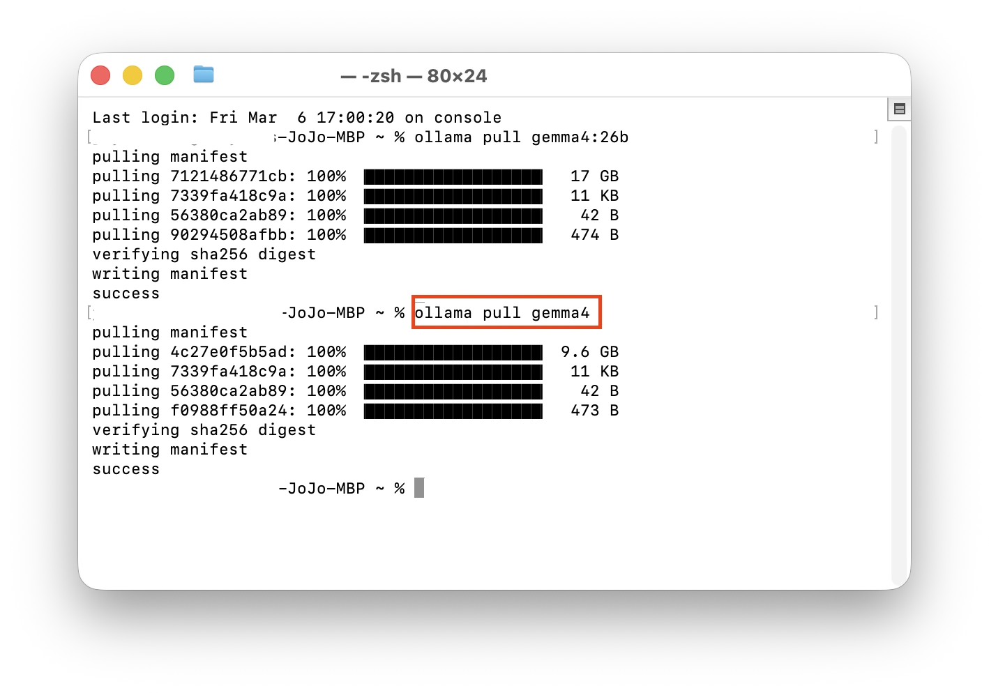 預設ollama pull gemma4
